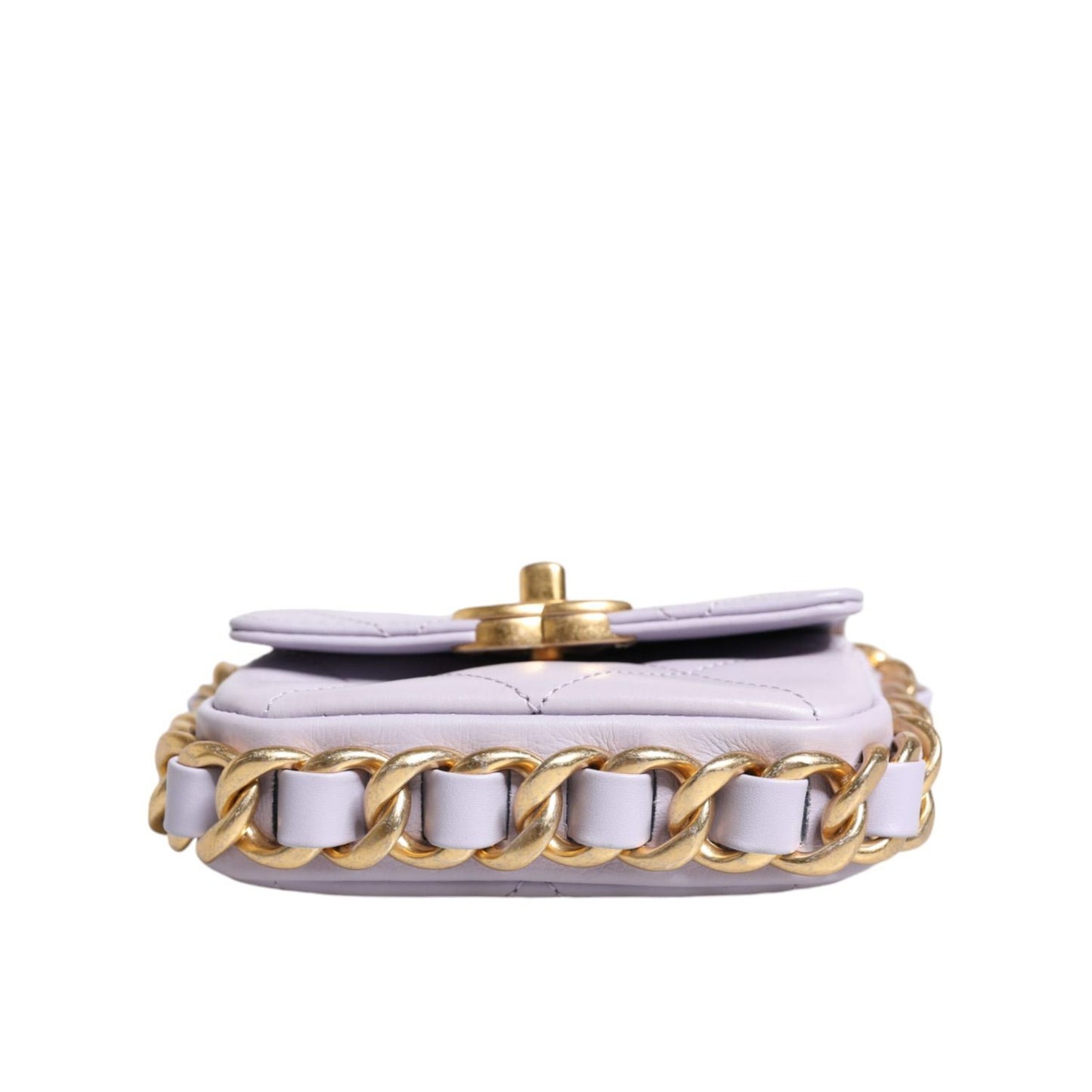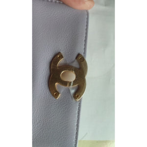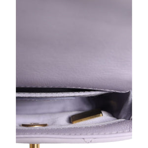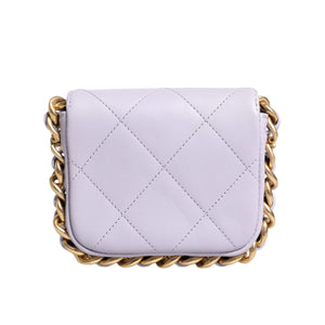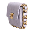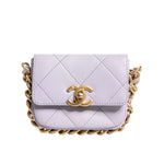 This Chanel Mini Framing Chain Bag gorgeous light purple calfskin leather.