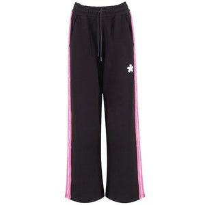 Comme des Fuckdown cotton palazzo trousers with fuchsia logo side band and logo print on the front, drawstring waist and two side pockets