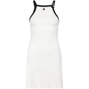 white/black cotton soft jersey halterneck contrasting border buckle-detail shoulder strap sleeveless appliqué logoat the chest internal logo tag thigh-length straight hem Buckle contrast short dress Size and Fit - This piece fits true to size. We recommend you get your regular size. Model is 1,75m / 5ft 8in wearing size S