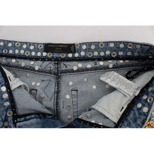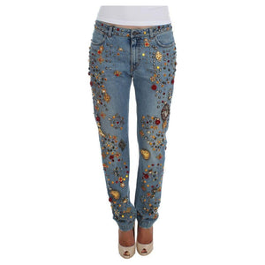 Gorgeous brand new with tags, 100% Authentic Dolce & Gabbana blue wash crystal heart Roses embellished enchanted Sicily boyfriend fit jeans. This item comes from the exclusive MainLine Dolce & Gabbana Collection.