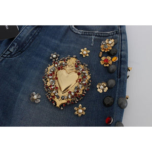 Dolce & Gabbana Crystal Roses Heart Embellished Jeans