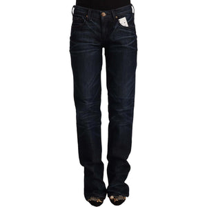 Ermanno Scervino Dark Blue Mid Waist Cotton Denim Straight Jeans