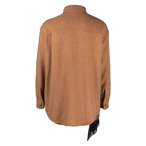 Andrea scarf-detail felted shirt from DESTIN featuring camel brown, wool blend, felted, scarf detailing, classic collar, front button fastening, long sleeves, buttoned cuffs, chest patch pocket and straight hem. Wool blend shirt Size and Fit - This piece fits true to size. We recommend you get your regular size. Model is 1,84m / 6ft 1in wearing size M