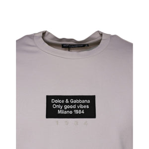 Dolce & Gabbana Beige Logo Cotton Blend Crew Neck T-shirt