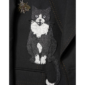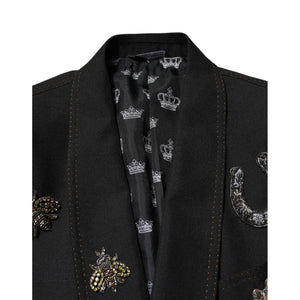Dolce & Gabbana Black Bee Crown Embellished Suit Coat Blazer