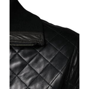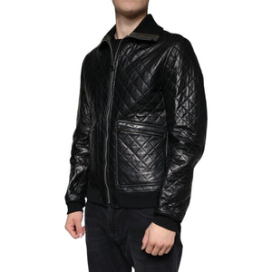 Dolce & Gabbana Black Calf Leather Quilted Full Zip Jacket