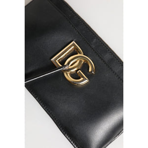 Dolce & Gabbana Black Calfskin Leather DG Logo Women Card Holder Wallet