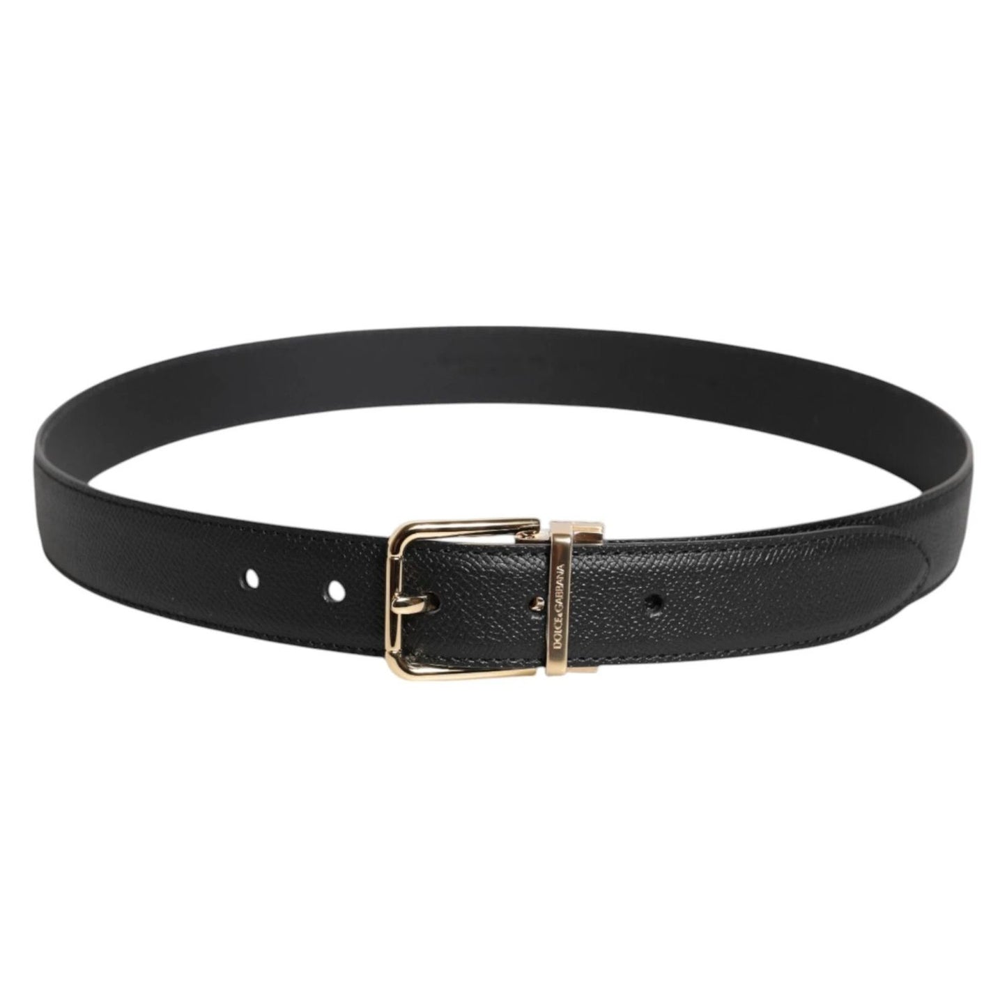 Dolce & Gabbana Black Calfskin Leather Gold Metal Buckle Belt