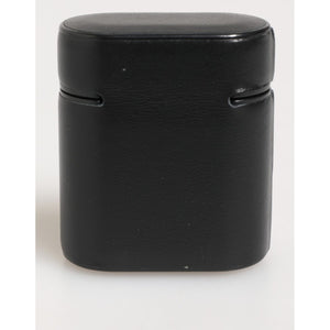 Dolce & Gabbana Black Calfskin Leather Logo Print Flip Holder Airpods Case