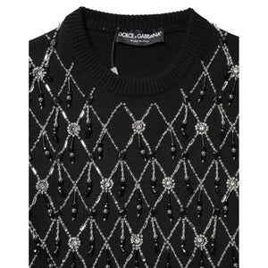 Dolce & Gabbana Black Cashmere Embellished Long Sleeves Top