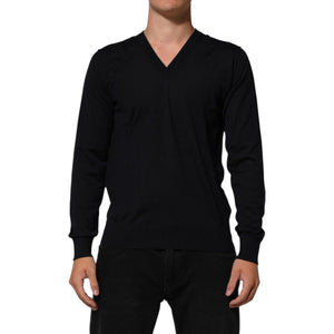Dolce & Gabbana Black Cashmere Knit V-Neck Pullover Sweater