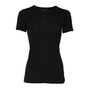 Dolce & Gabbana Black Cotton Henley Short Sleeves Top T-shirt