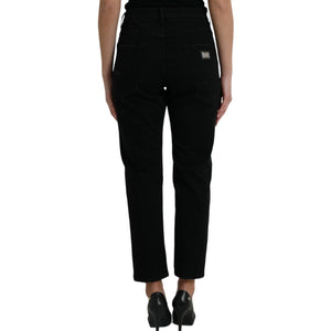 Dolce & Gabbana Black Cotton High Waist Tattered Denim Jeans
