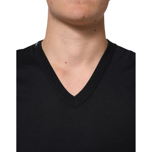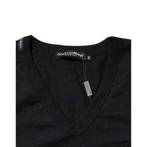 Dolce & Gabbana Black Cotton Plain V-Neck Men Shirt T-shirt