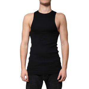 Dolce & Gabbana Black Cotton Sleeveless Round Neck Tank T-shirt
