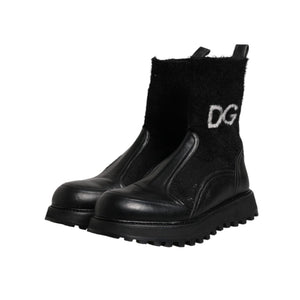 Dolce & Gabbana Black DG Logo Horse Sock Ankle Boots Shoes