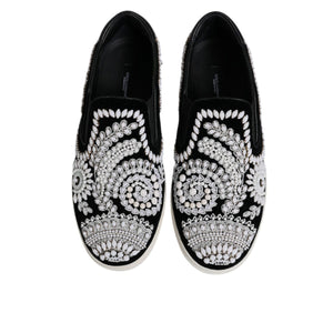 Dolce & Gabbana Black Embellished London Men Slip On Shoes