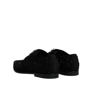 Dolce & Gabbana Black Embellished Suede Derby Formal Shoes
