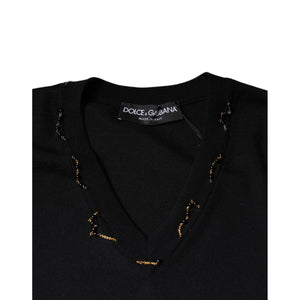 Dolce & Gabbana Black Embellished V-neck Pullover Sweater