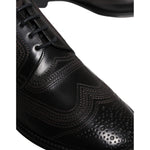 Dolce & Gabbana Black Embroidered Classic Leather Derby Dress Shoes