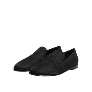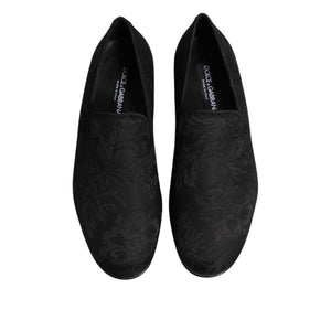 Dolce & Gabbana Black Floral Brocade Loafers Men Dress Shoes
