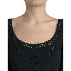 Dolce & Gabbana Black Floral Lace Viscose Bodycon Midi Dress