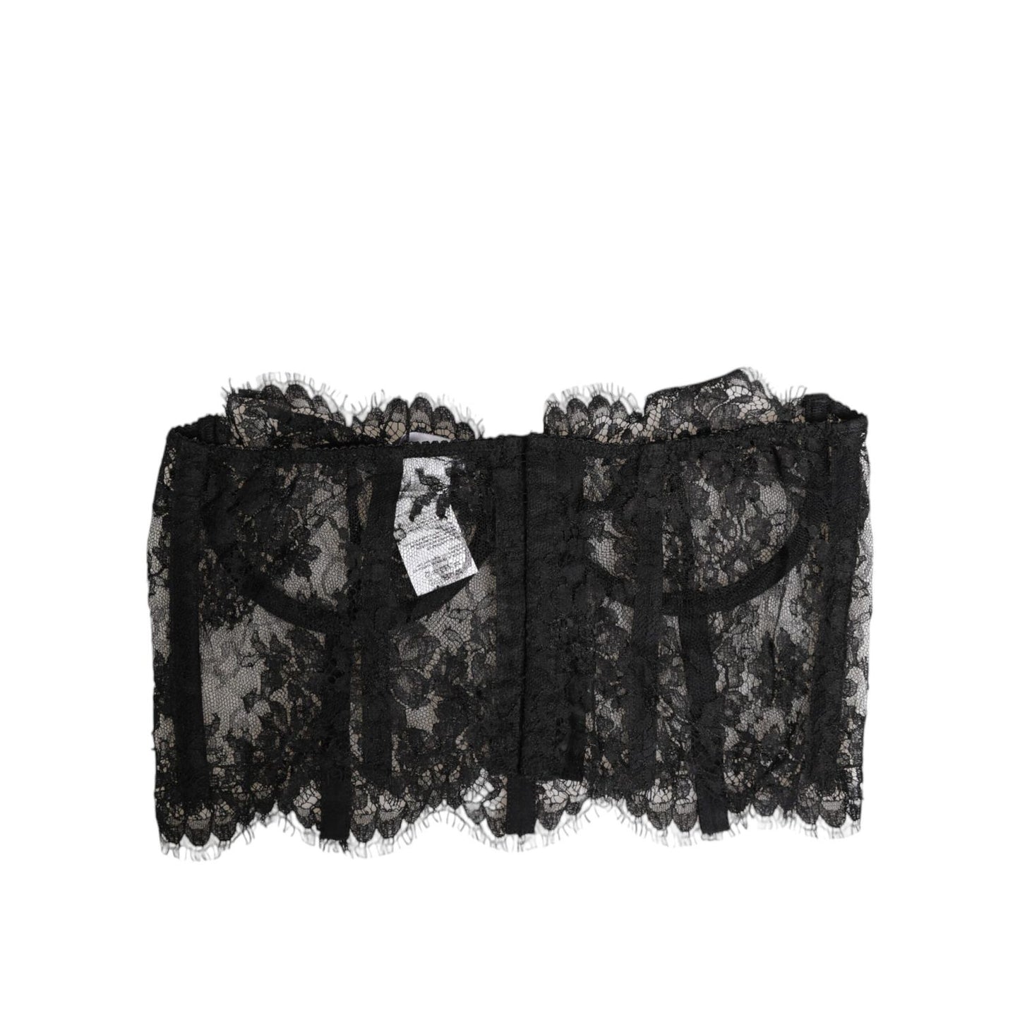 Dolce & Gabbana Black Floral Lace Bustier Bralette Top Underwear
