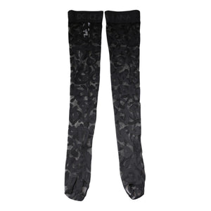 Dolce & Gabbana Black Floral Lace Cotton Stretch Stockings Socks