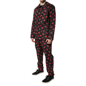 Dolce & Gabbana Black Floral Print Cotton Men Pajama Set Sleepwear