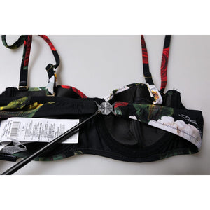 Dolce & Gabbana Black Floral Print Nylon Balconcino Bra Underwear