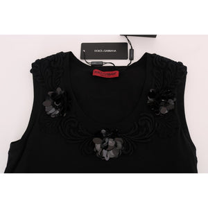 Dolce & Gabbana Black Cotton Floral Crystal Tank Top