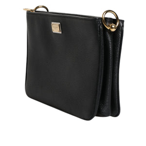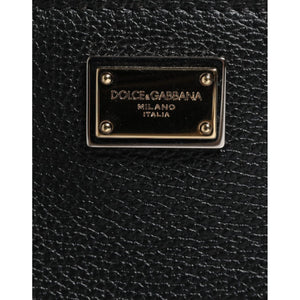 Dolce & Gabbana Black Grain Leather Logo Plaque Clutch Bag