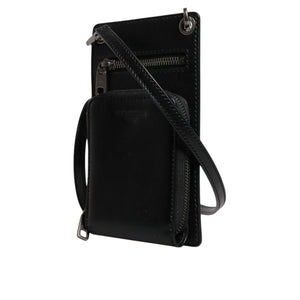 Dolce & Gabbana Black Horse Leather Zip Logo Shoulder Neck Strap Wallet