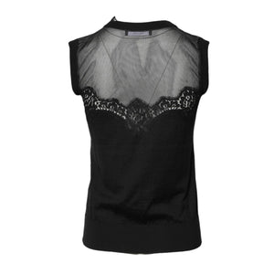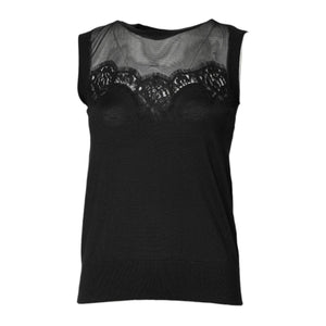 Dolce & Gabbana Black Lace Sheer Crew Neck Sleeveless Top