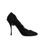 Dolce & Gabbana Black Lace Stretch Heels Mid Calf Boots Shoes