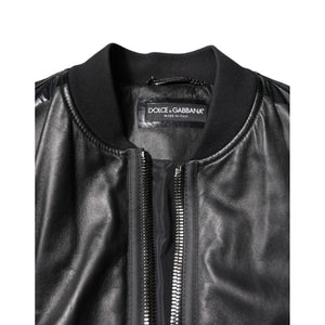 Dolce & Gabbana Black Lambskin Leather Biker Full Zip Jacket