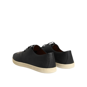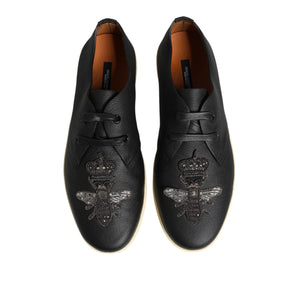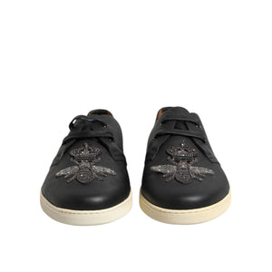 Dolce & Gabbana Black Leather Bee Crown Low Top Sneakers Shoes