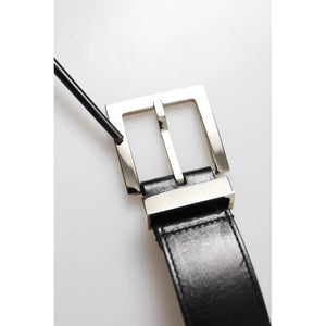 Dolce & Gabbana Black Leather Beige Strap Silver Metal Buckle Belt