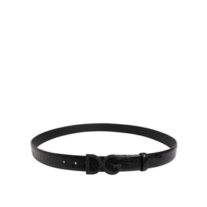 Dolce & Gabbana Black Leather Classic Metal DG Buckle Belt
