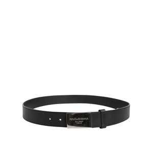 Dolce & Gabbana Black Leather Classic Metal Logo Buckle Belt