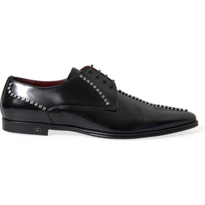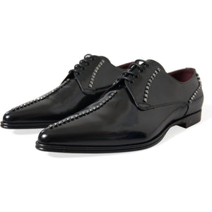 Dolce & Gabbana Black Leather Crystal Dress Formal Shoes