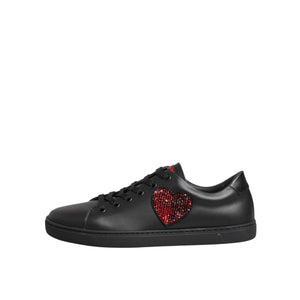 Dolce & Gabbana Black Leather Crystal Heart Low Top Sneakers Shoes