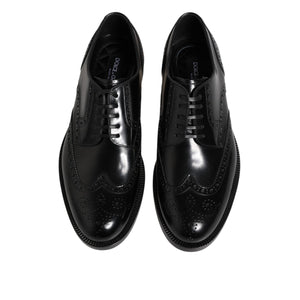 Dolce & Gabbana Black Leather Derby Wingtip Formal Shoes