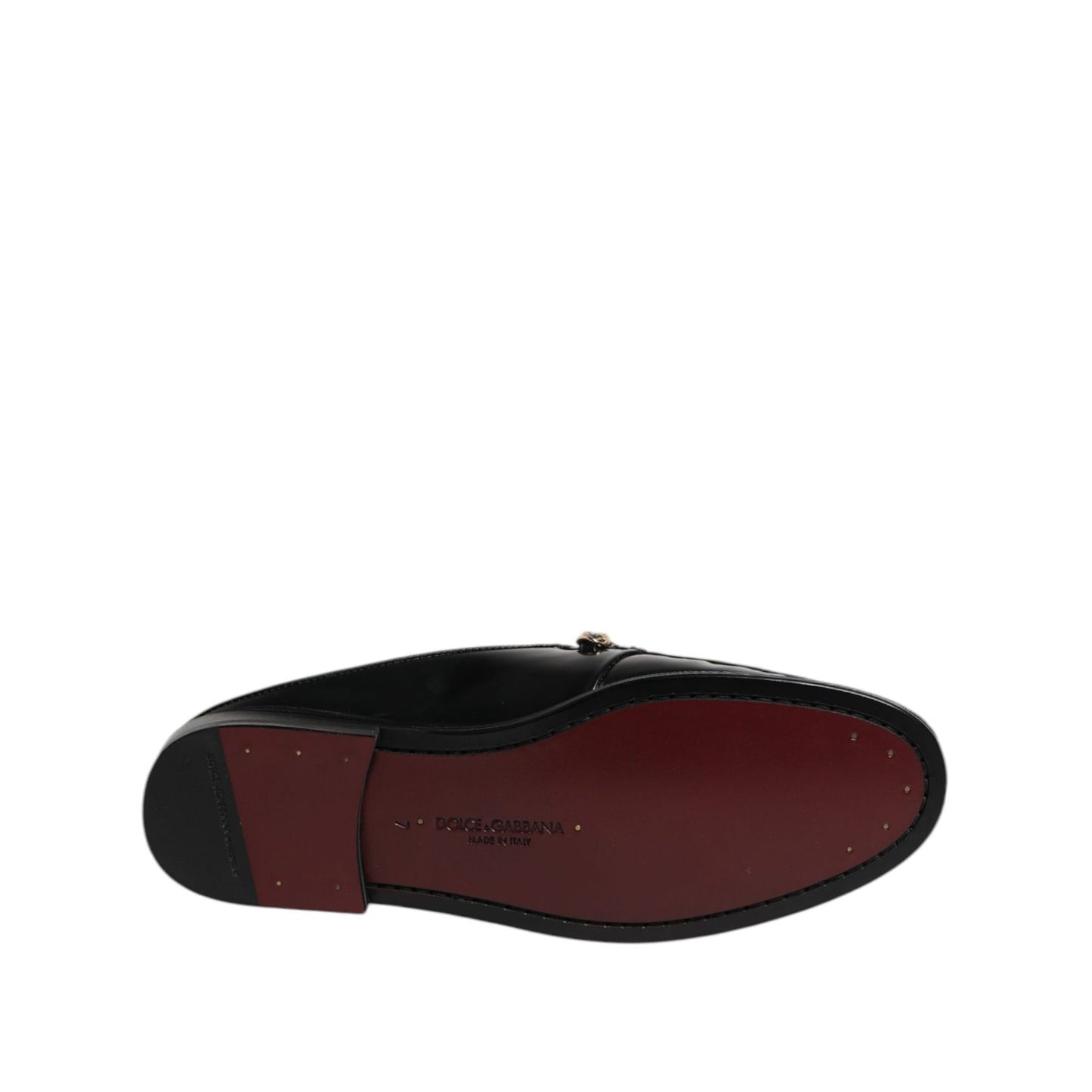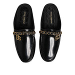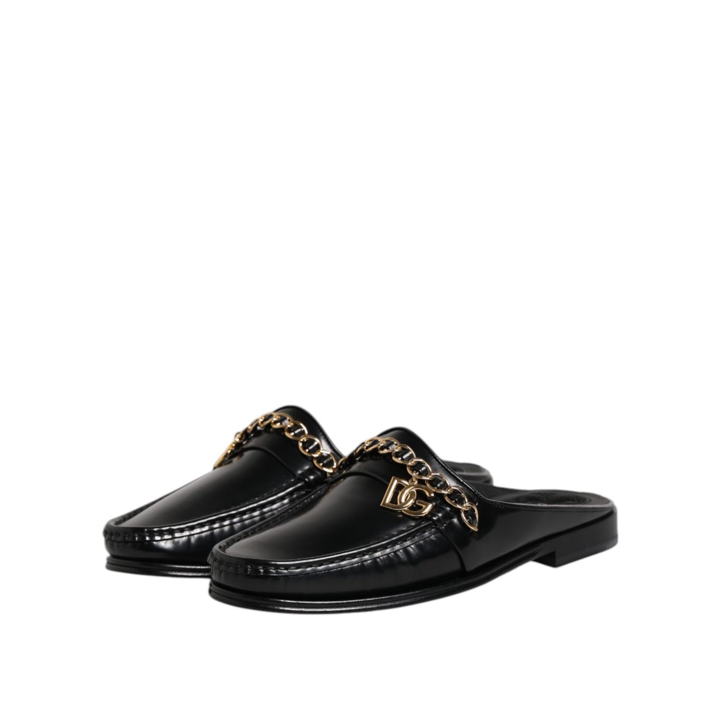 Dolce & Gabbana Black Leather DG Chain Embellished Sandals Shoes