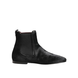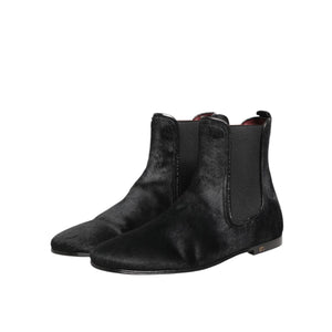 Dolce & Gabbana Black Leather Fur Men CHELSEA Boots Shoes