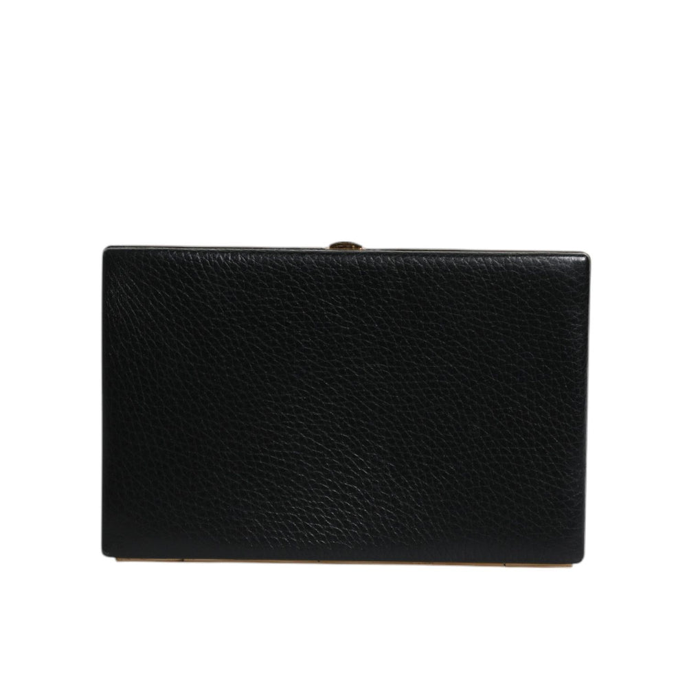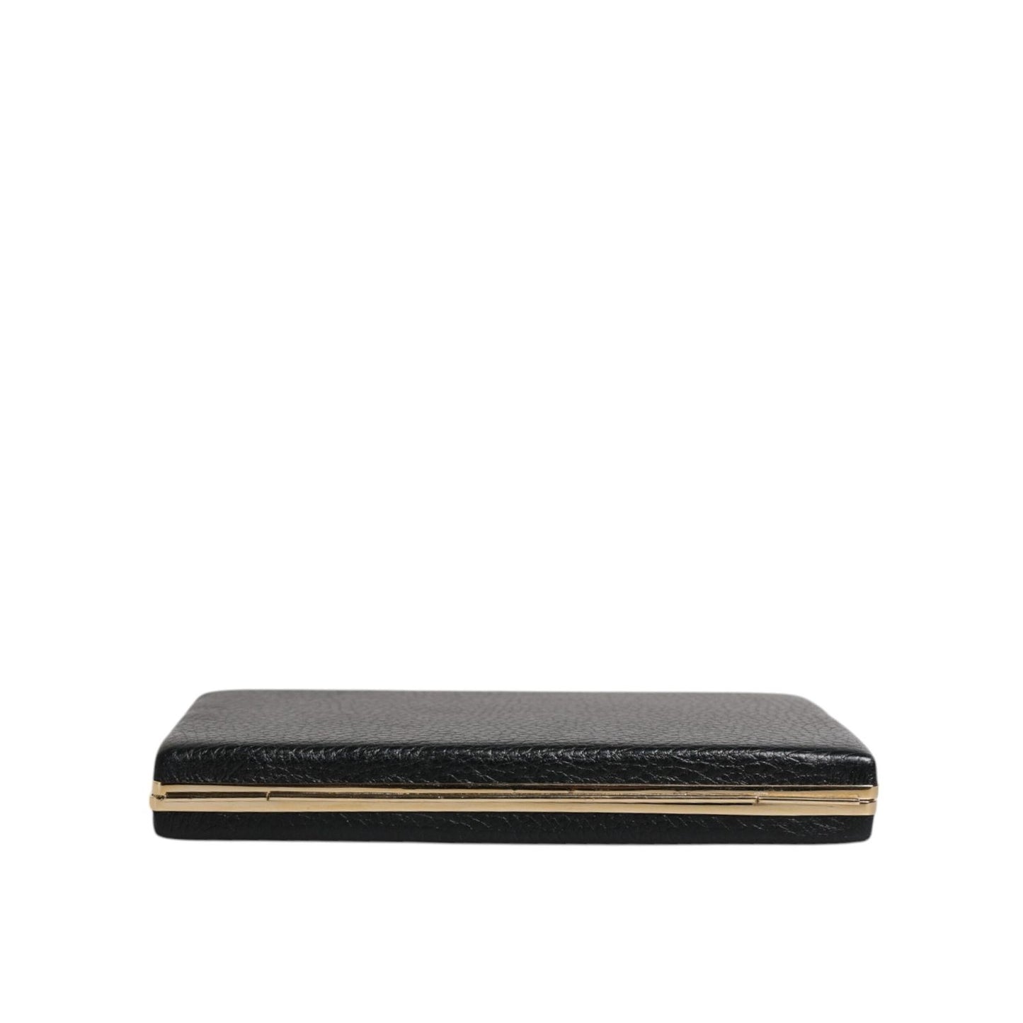 Dolce & Gabbana Black Leather Gold Frame Clutch Evening Party Purse Bag