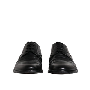 Dolce & Gabbana Black Leather Lace Up Men Derby Formal Shoes