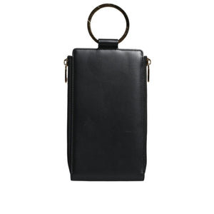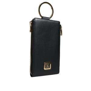 Dolce & Gabbana Black Leather Logo Plaque Neck Strap Card Coin Wallet