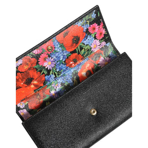 • Dolce & Gabbana Black Leather Logo Plaque Trifold Card Holder Wallet