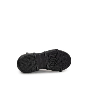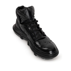 Dolce & Gabbana Black Leather Allumin Glove Derby Shoe. Safety shoe model, front lace-up fastening, tone-on-tone Derby-inspired workmanship, oversized outer sole, tongue and back in quilted leather. Tone-on-tone logo printed on the back.